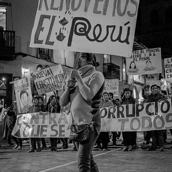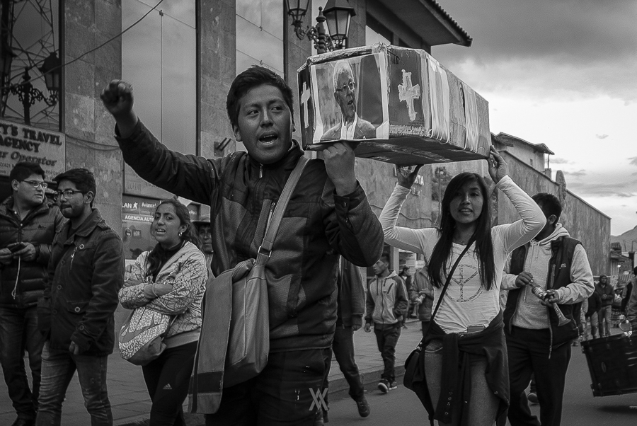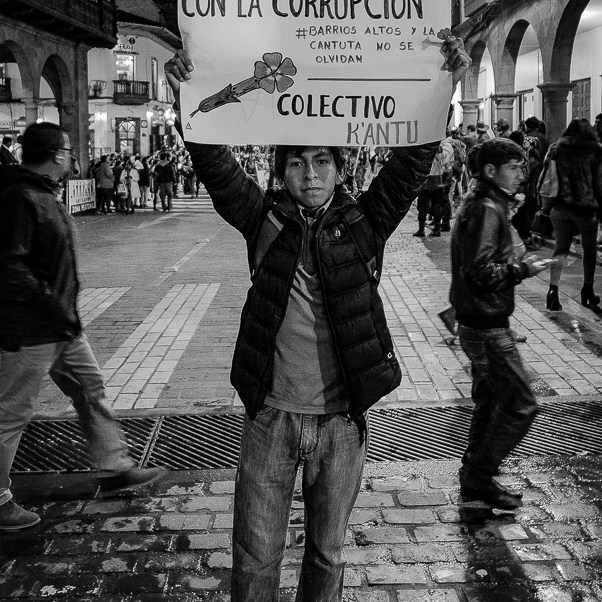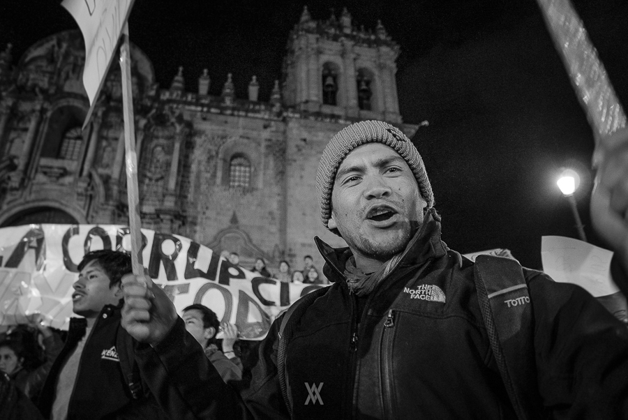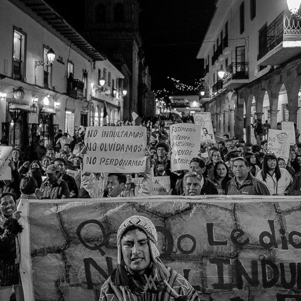 Serie fotográfica documental de marchas públicas contra el indulto a Alberto Fujimori. 11 de enero de 2018, Cusco, Perú.